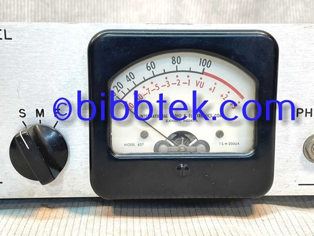 This version of the RP3C has a single input stage, with the meter in the center of the front panel.  The XLR is wired to an input transformer that sits directly behind the XLR jack.  There is an octal dummy plug above the XLR that can be wired for one of 3 input impedances using the internal transformer; 250Ω, 50Ω and Hi-Z.  Inserting a plug into the LINE input jack will bypass the balanced input circuit.
