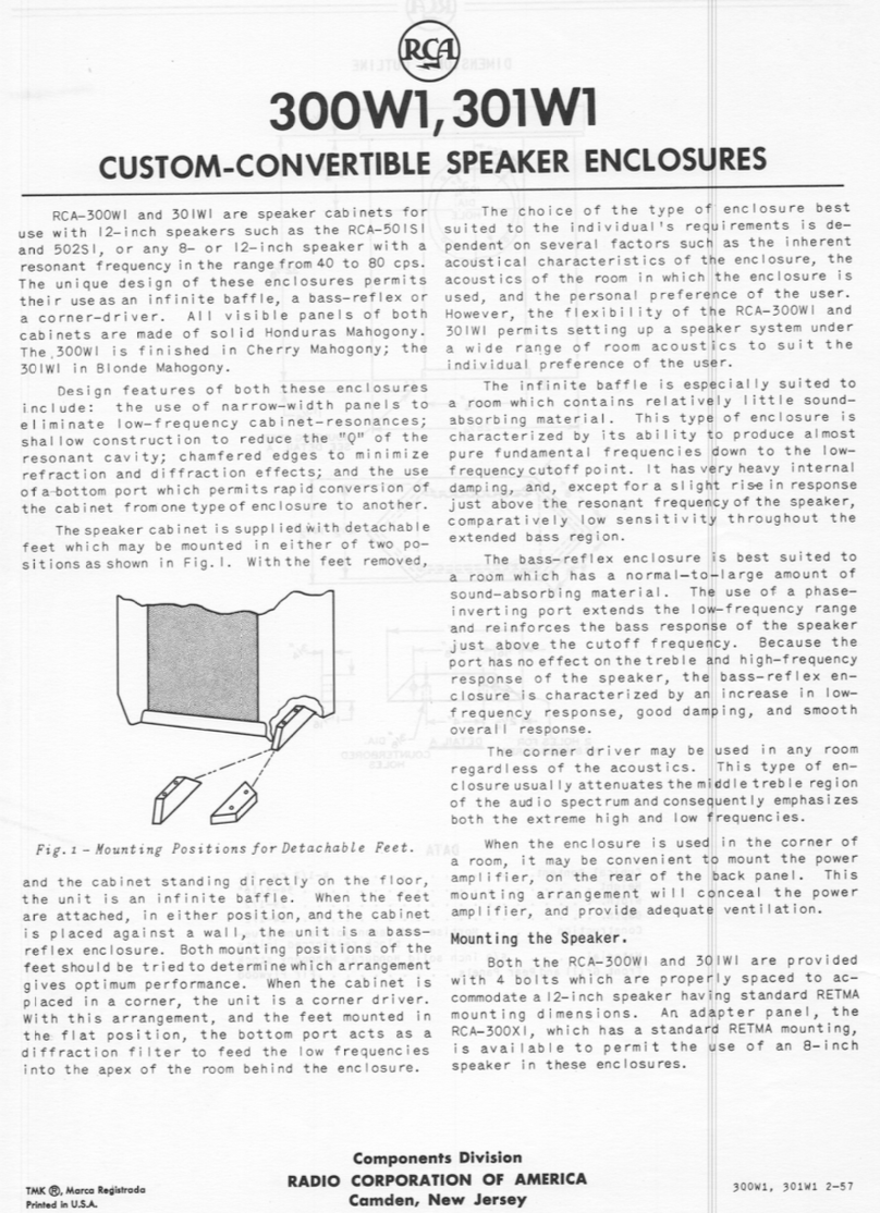 - RCA Model 300W1 Cabinets. SOLD OUT.